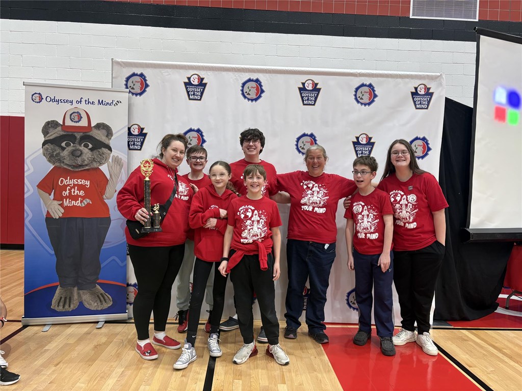 WILLIAMSPORT, Pa. (APRIL 7, 2025) — Williamsport Area Middle School’s Odyssey of the Mind (OM) team will head to the 2025 World Finals after securing a first-place win at the state round on Saturday at Pocono Mountain East Campus.