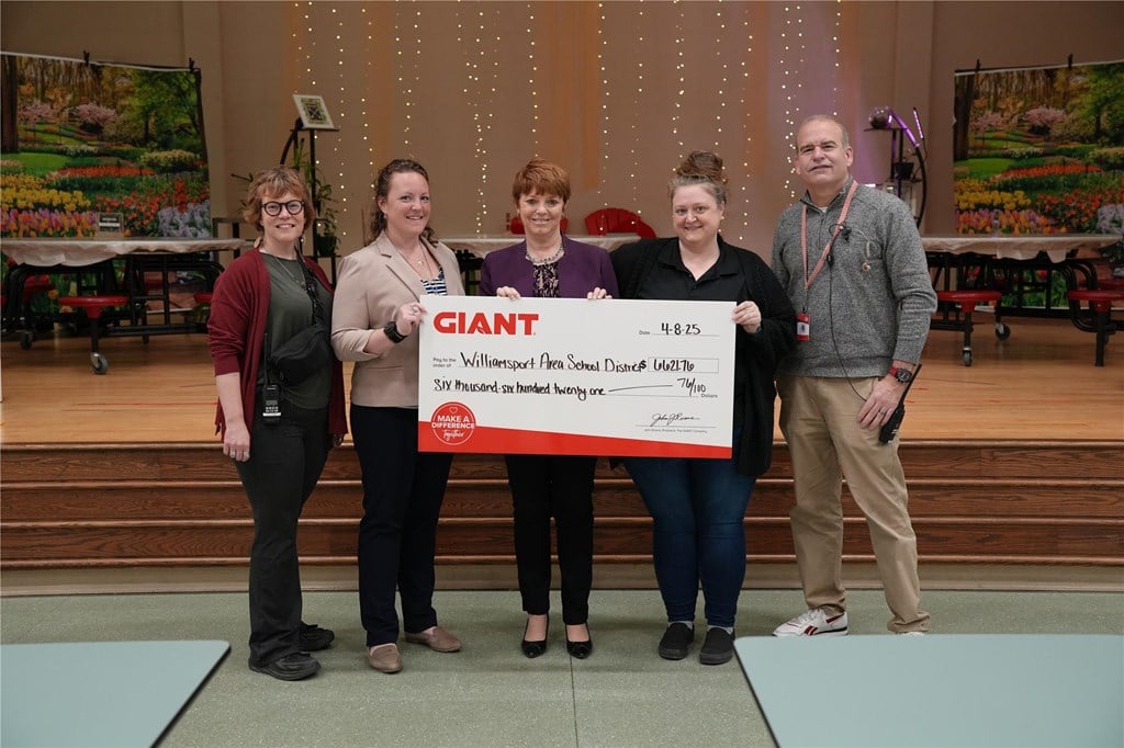 WILLIAMSPORT, Pa. (APRIL 8, 2025) — The Giant Co. presented Williamsport Area School District (WASD) with $6,621.76 Tuesday morning to benefit the district’s food service program.