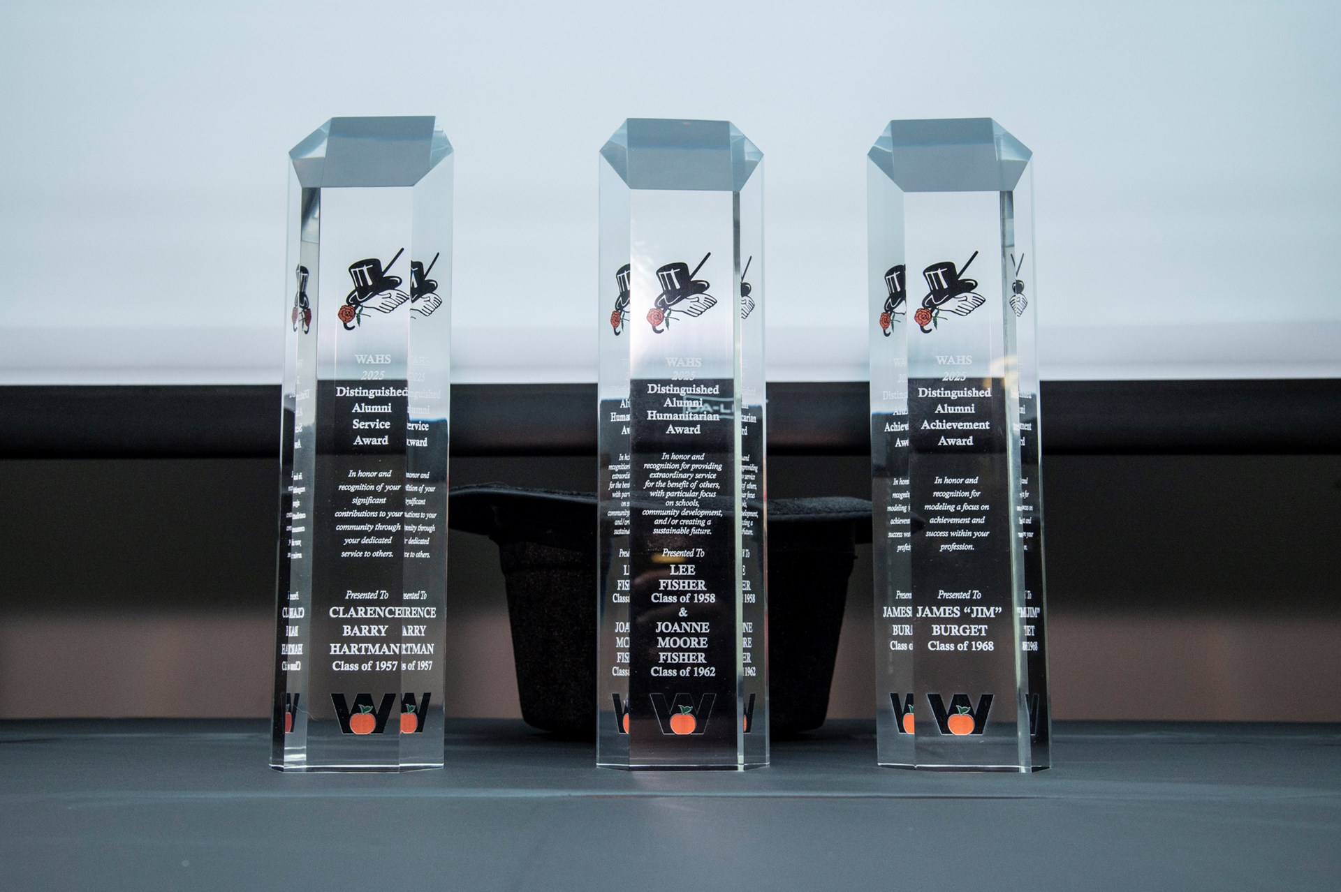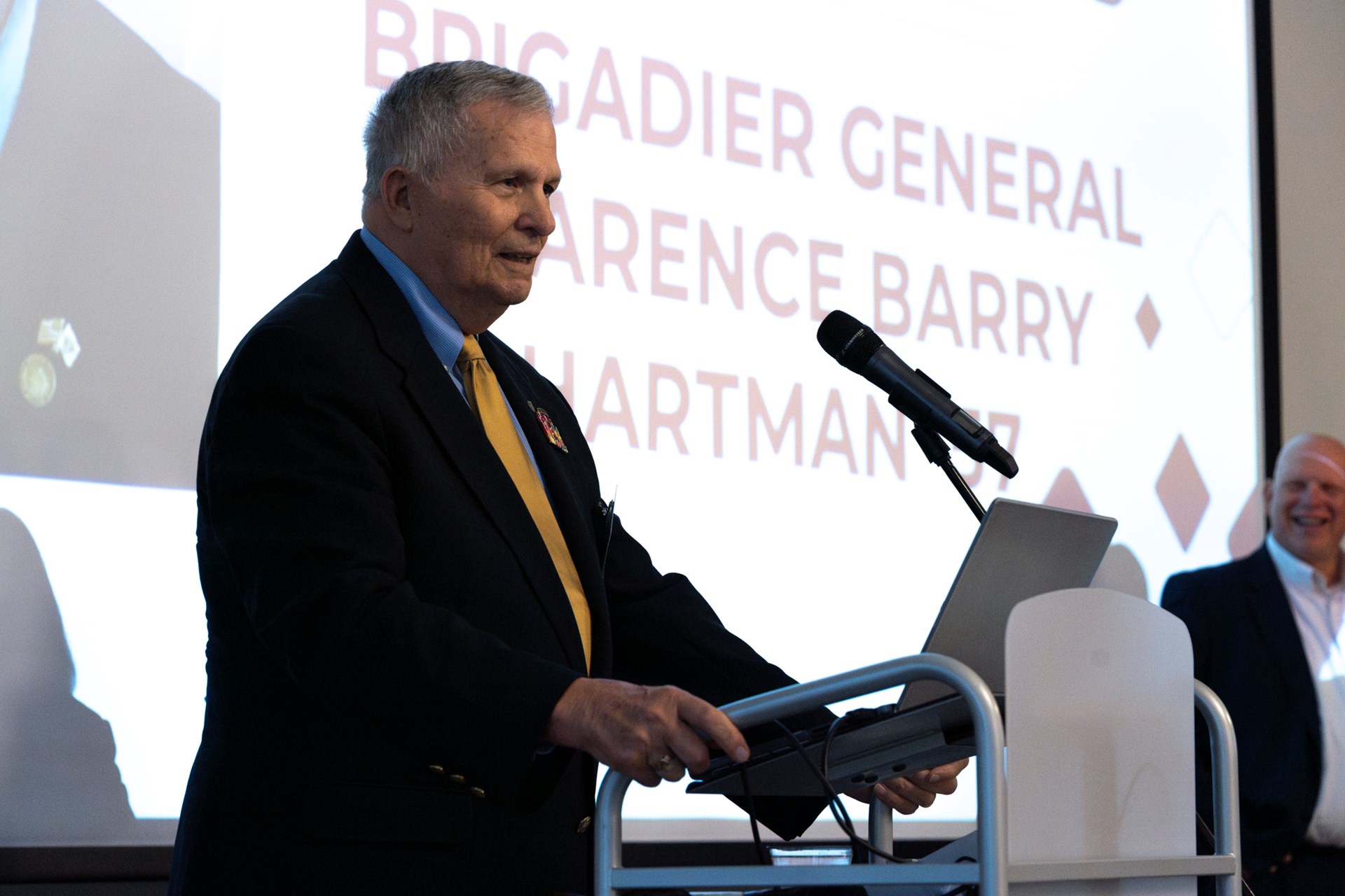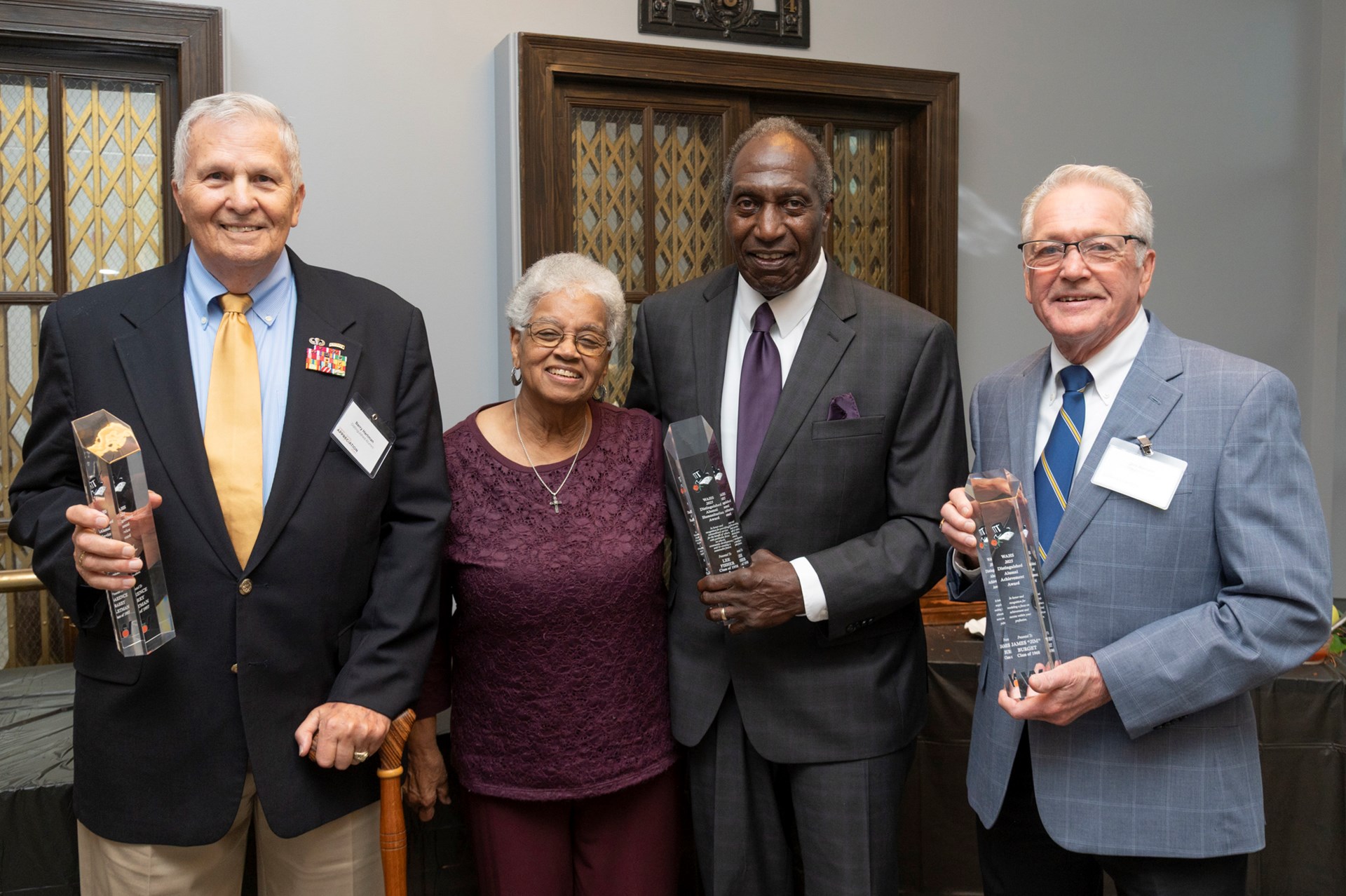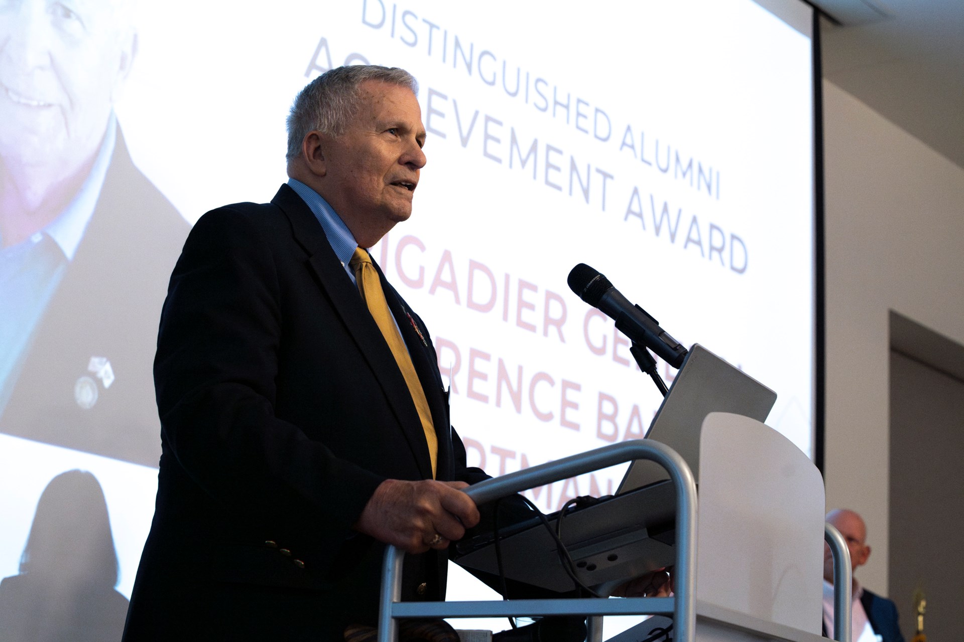WASDEF President Mallory Weymer presented this year’s cohort of Distinguished Alumni: James “Jim” Burget ’68, Lee ’58 and Joanne (Moore) Fisher ’62, and Brigadier General Clarence Barry Hartman ’57.